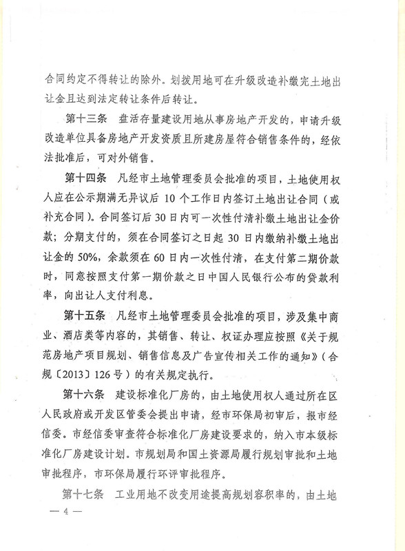 第十五條  凡經(jīng)市土地管理委員會(huì)批準(zhǔn)的項(xiàng)目,涉及集中商業(yè)、酒店類等內(nèi)容的,其銷售、轉(zhuǎn)讓、權(quán)證辦理應(yīng)按照《關(guān)于規(guī)范房地產(chǎn)項(xiàng)目規(guī)劃、銷售信息及廣告宣傳相關(guān)工作的通知》(合規(guī)〔2013126號(hào))的有關(guān)規(guī)定執(zhí)行。