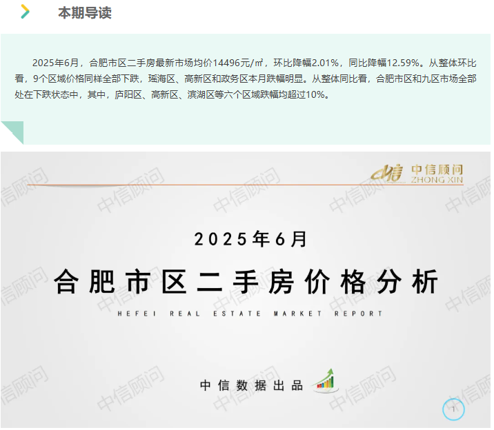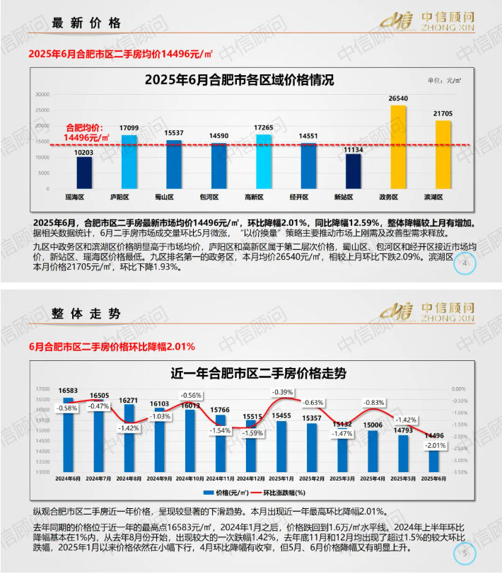 二手房市場 | 2025年6月,合肥住宅均價1.45萬元/㎡,環比下降2.01%,同比下降12.59%