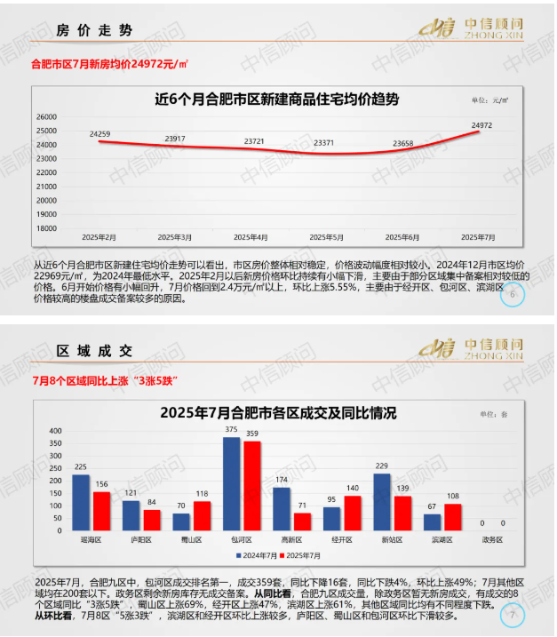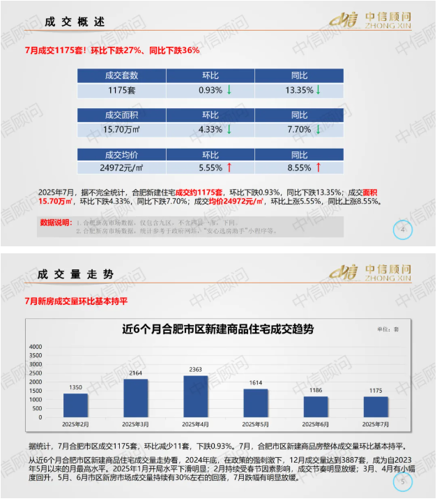 新房市場 | 2025年7月,合肥新房成交量環比下跌0.93%,同比下跌13.35%