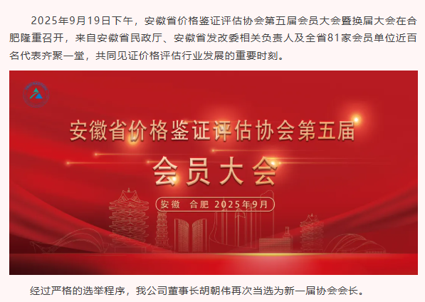 我公司胡朝偉董事長(zhǎng)再次當(dāng)選安徽省價(jià)格鑒證評(píng)估協(xié)會(huì)新一屆會(huì)長(zhǎng)