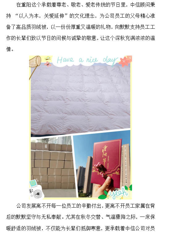 溫情暖重陽 被暖父母心 ——中信顧問重陽暖心慰問